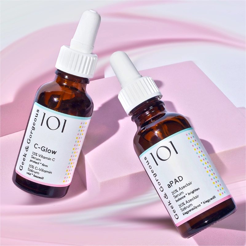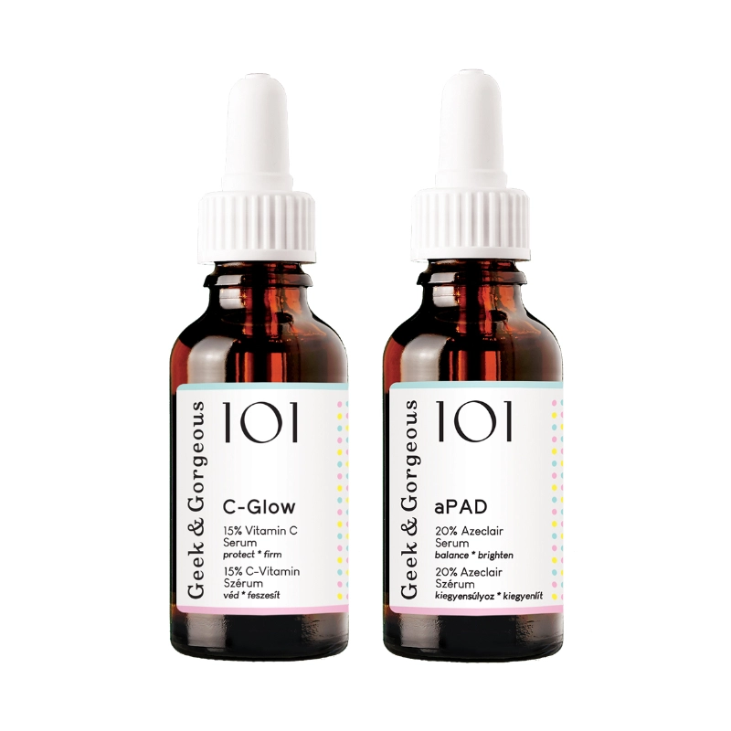 Duo impotriva hiperpigmentarii, Ser vitamina C 30 ml si Ser cu derivat al acidului azelaic 30 ml Geek & Gorgeous: