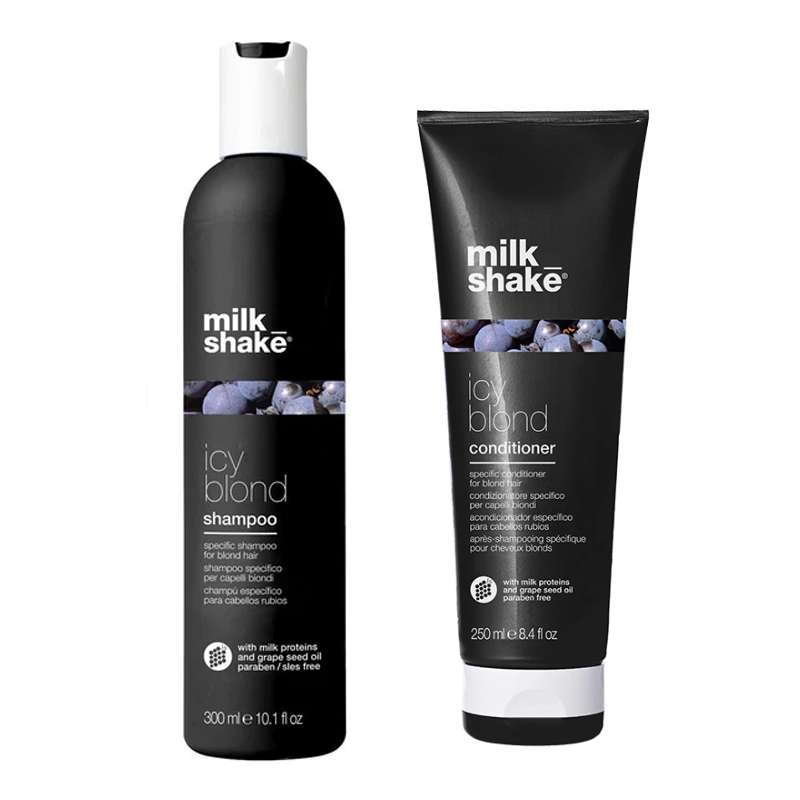 Pachet ICY BLOND pentru crearea tonurilor reci - Sampon 300 ml, Balsam 250 ml Milk Shake contine: