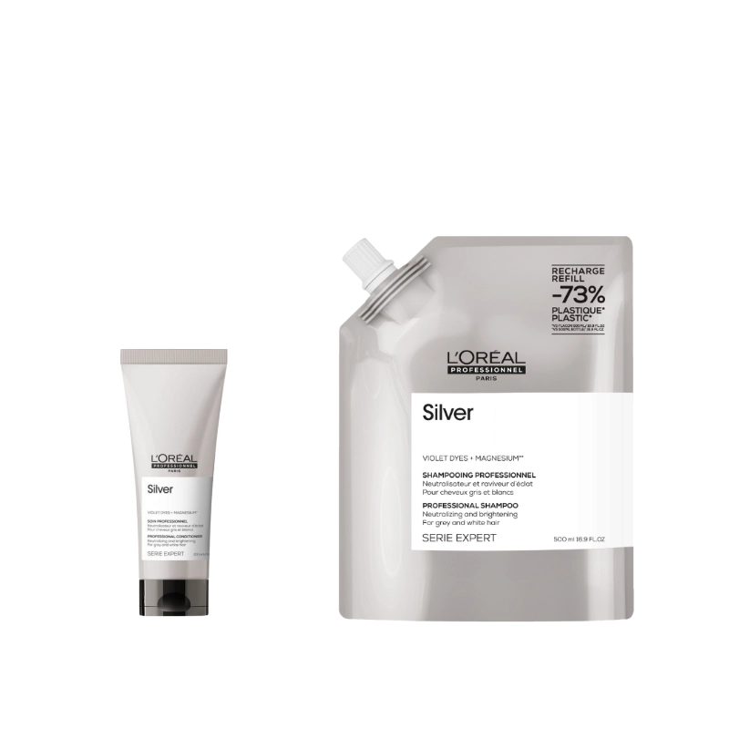 Pachet pentru par blond expert silver - rezerva sampon 500ml, balsam 200ml