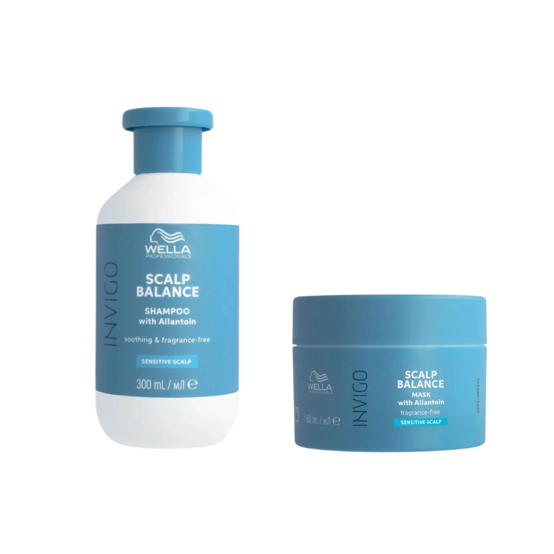 1. Sampon pentru scalp sensibil INVIGO SENSO CALM SHAMPOO Wella Professionals 300ml - Are o formula usoara, fara parfum, special conceputa pentru ingrijirea scalpului sensibil si iritat. Curata cu delicatete, indepartand eficient excesul de sebum si impuritatile, iar alantoina din compozitie ajuta la calmarea pielii si la prevenirea iritatiilor, a mancarimilor si disconfortului. Ofera o senzatie de prospetime de lunga durata si lasa parul moale, stralucitor si usor de pieptanat.