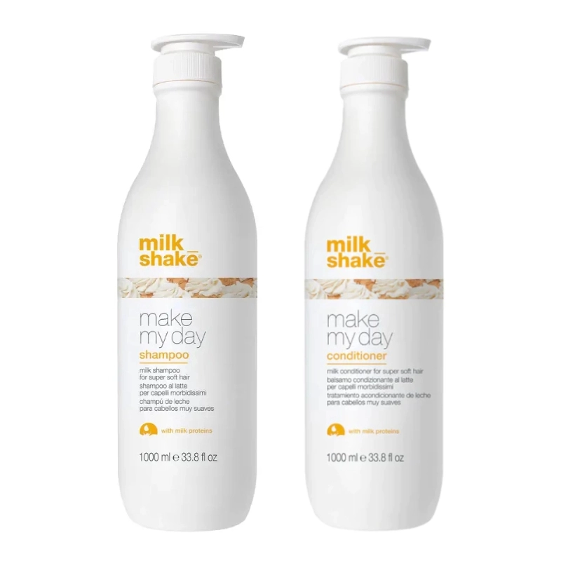 Pachet pentru toate tipurile de par Make My Day Milk Shake - Sampon 1000ml, Balsam 1000ml Milk Shake - Sampon 300 ml, Balsam 250 ml Milk Shake contine: