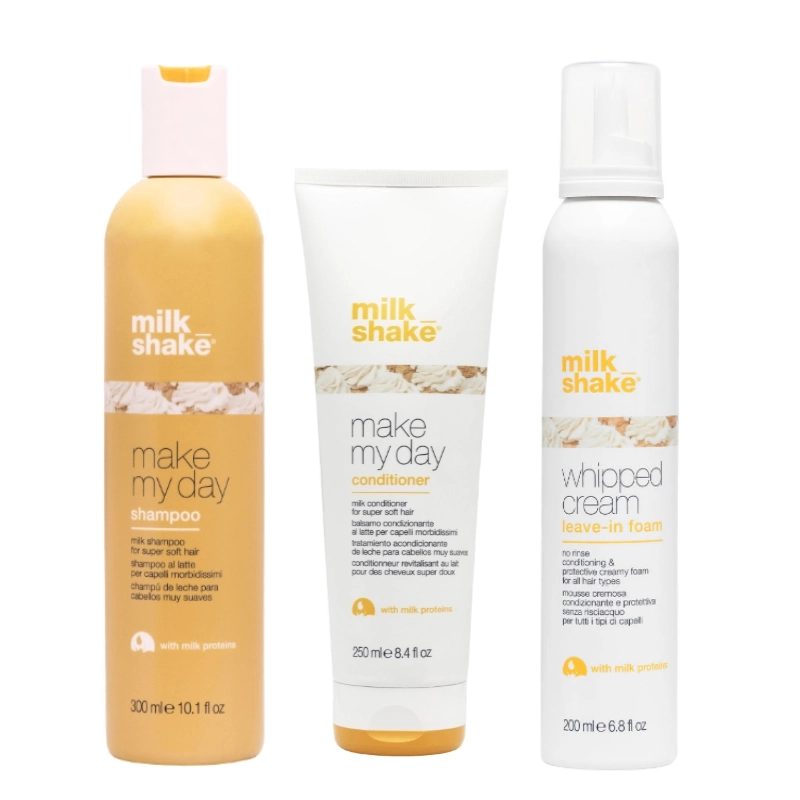 Pachet pentru toate tipurile de par Make my Day - Sampon 300ml, Balsam 250ml, Spuma 200ml Milk Shake contine: