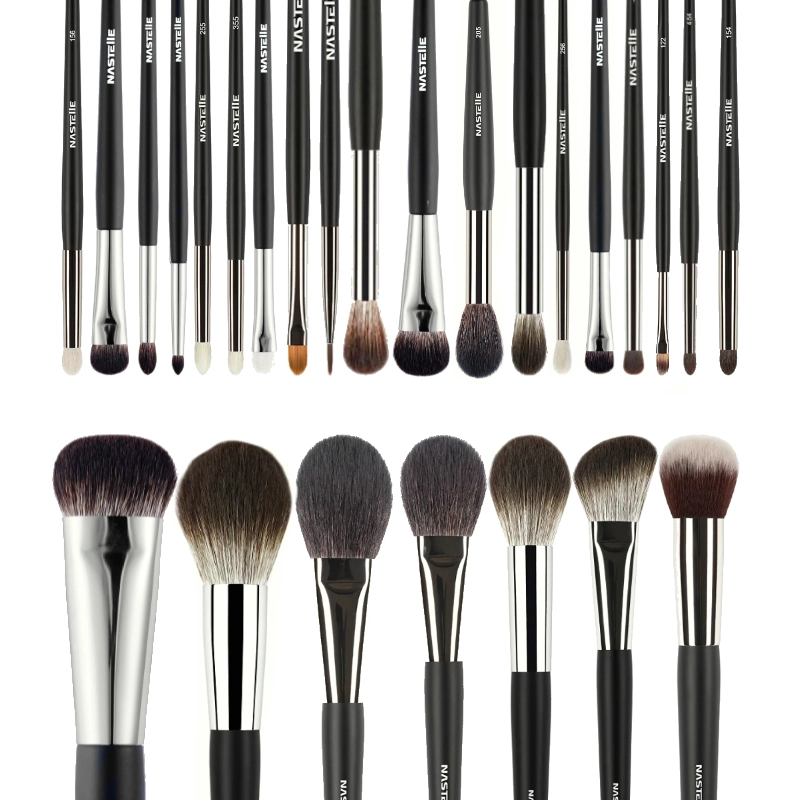 6. Pensula pentru pudra/iluminator/blush din par natural N205 Nastelle - are forma ideala pentru aplicarea pudrelor, bronzer-ului, conturarea usoara si sculptarea fetei. Ideala pentru aplicarea rapida, distriburea sau retusarea produselor prafoase. Fibrele lungi si forma pensulei, asigura o aplicarea si un finish impecabil, definind pometii, tamplele, linia de centru a nasului. Confectionata din par natural de capra.